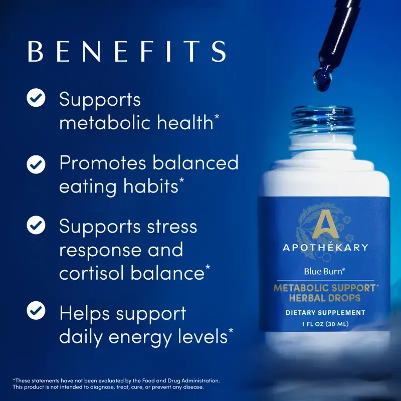 Apothékary Blue Burn - Metabolic Support Liquid Herbal Drops* | Antioxidant Rich, Alcohol-Free, Clinically-Tested, Certified Gluten-Free,