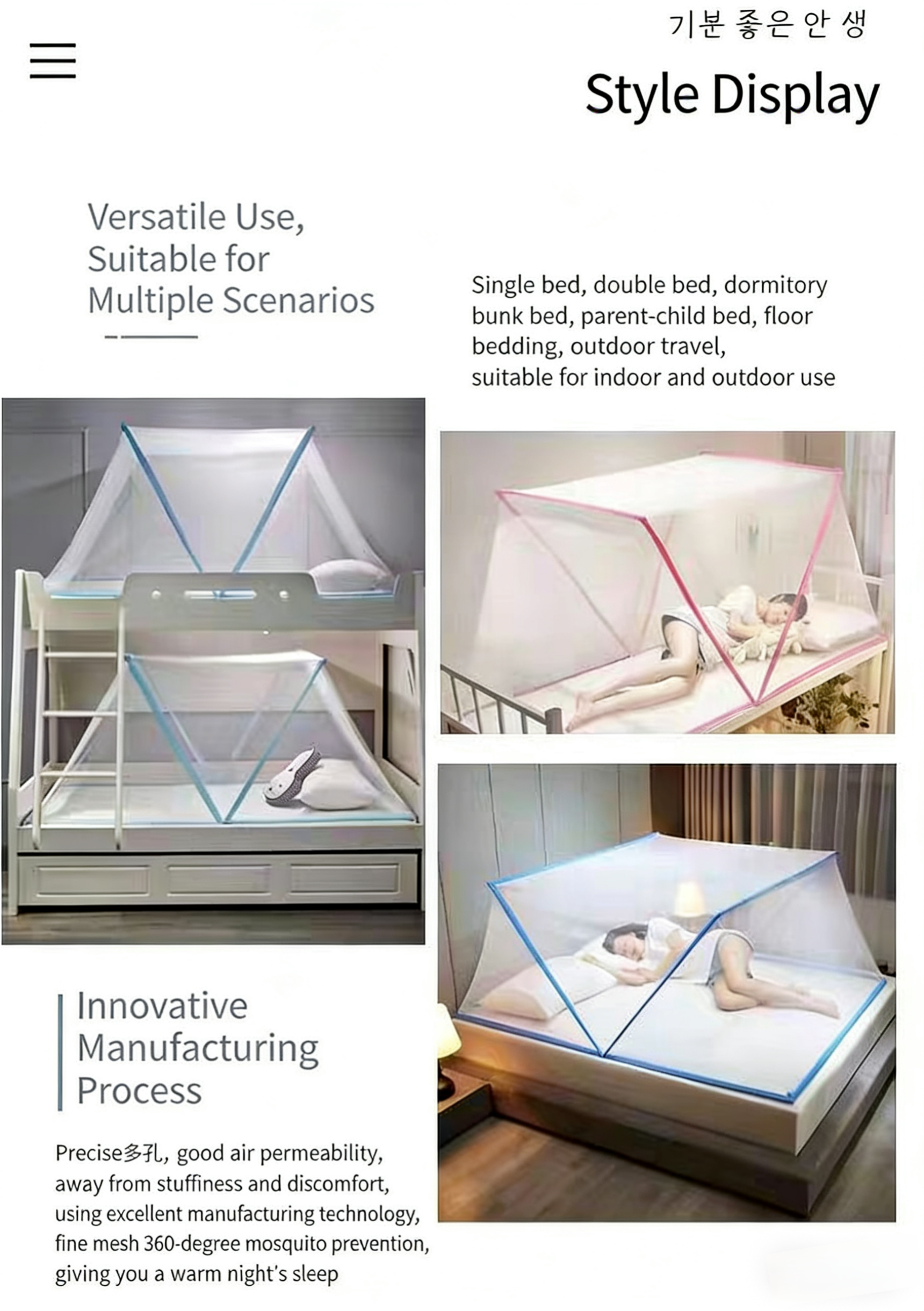 ·Net, Bed Net, Collapsible Net Tent: This versatile net is perfect for both home and travel. It features a collapsible design, making it easy to store and transport.