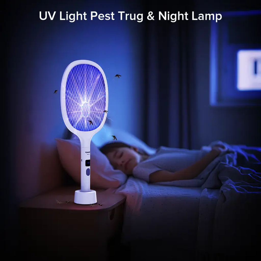 ·【Smart LED Battery Indicator & Rechargeable Base】Never guess the power level! The gnat killer indoor features an LED display showing real-time battery status. Simply dock it on the charging base overnight for 24+ hours of cordless operation.