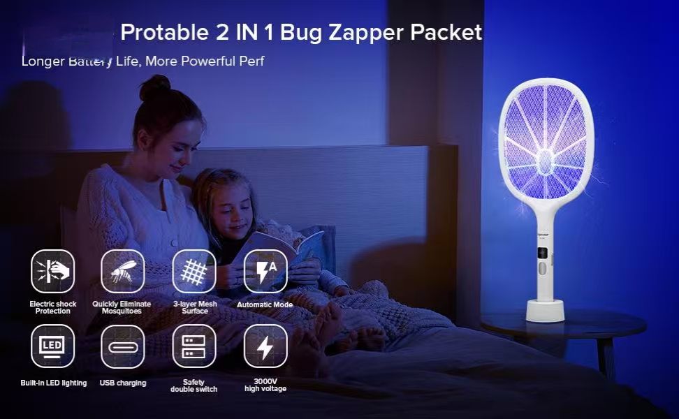 ·【Safe & Shockproof Fly Swatter for Indoors】Designed for family homes, this fly swatter for indoors uses a 360° protective grid to prevent accidental contact. Kids and pets can roam freely—no chemicals, sparks, or dangerous voltages!